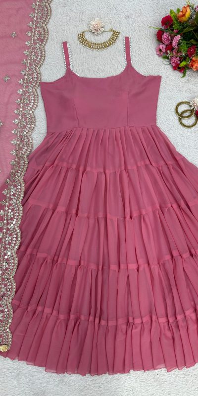 ZSR 5547 Pink Color Gown : Fox Georgette Work : Embroidery Sequence Work Inner : Micro Cotton Traditional Wear, Wedding, Festive, Events. @1749/-