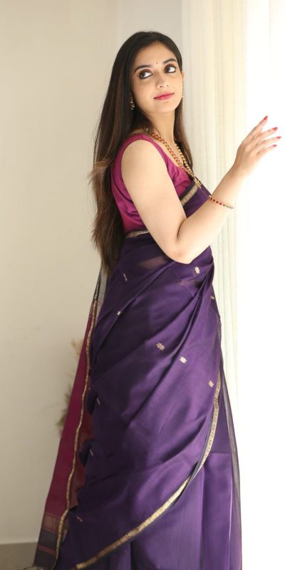 Aesthetically Violet Color Soft Lilan Slab Jacquard Work Saree