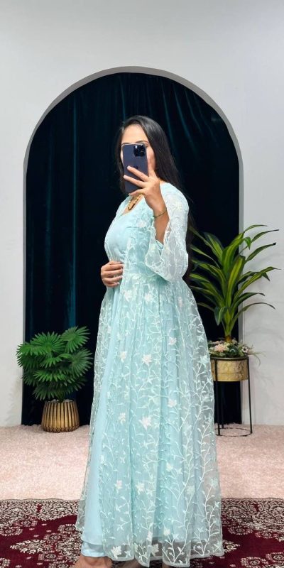 ST 1042 Blue Color Georgette Embroidery Sequence Gown Casual, Wedding, Party, Festive, Events Etc. Expected Delivery 4-6 Working Days @1999/-