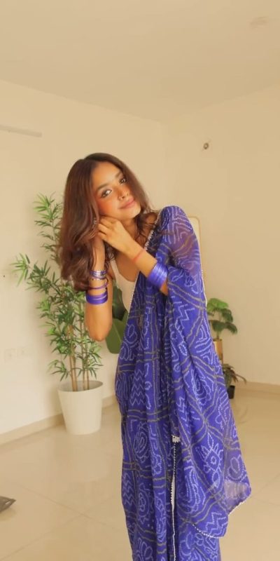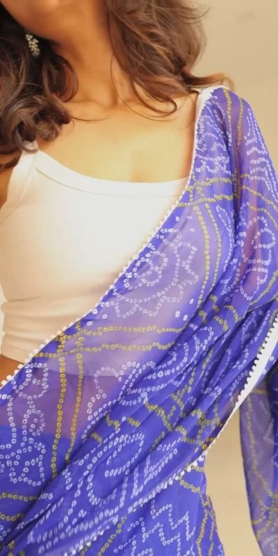 Aglow Blue Color Soft Georgette Silk Bandhani Design Saree