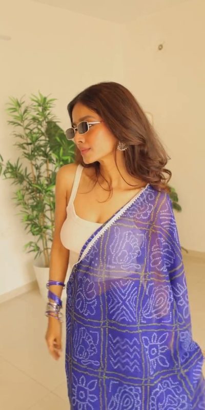 SC 410 Blue Color Soft Georgette Silk Bandhani Design Saree Casual, Wedding, Festive, Events . Expected Delivery  4-6 Working Days @1599/- only