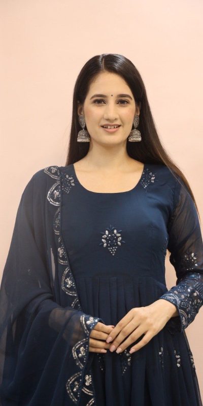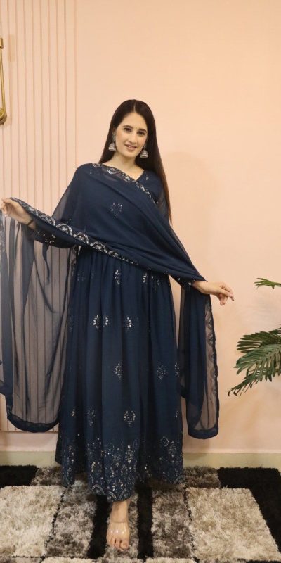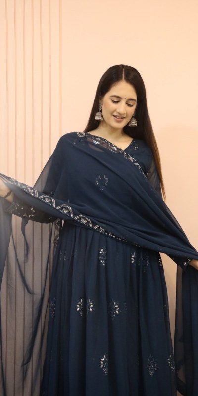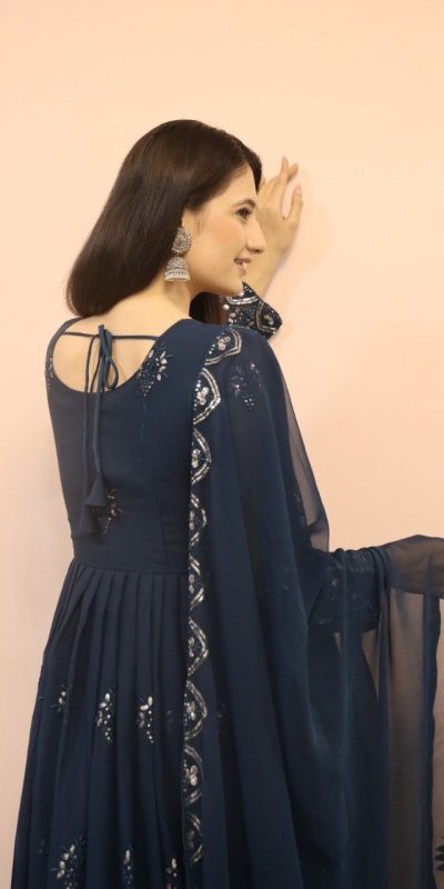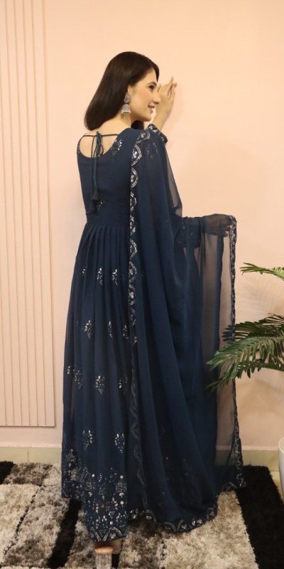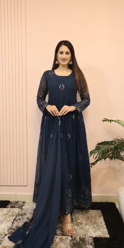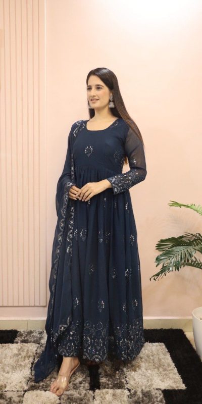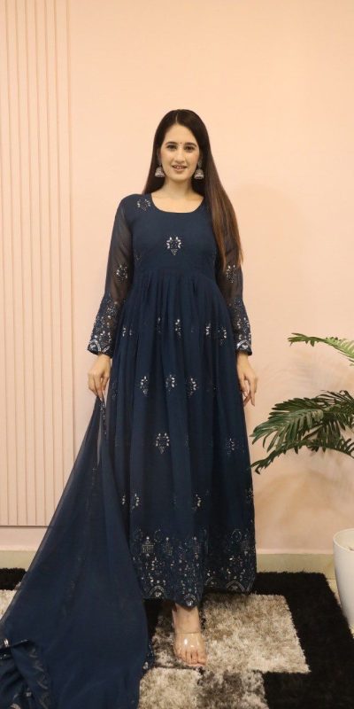 DC G55 Royal Blue Color Sequence Embroidery Georgette Gown Casual, Wedding, Party, Festive, Events Etc. Expected Delivery 4-6 Working Days @2099/-