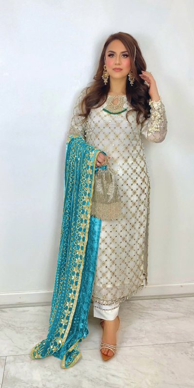 SRK 5133 White & Blue Color Faux Georgette Embroidery Salwar Suit Wedding, Party, Festive, Events Expected Delivery 4-6 Working Days @ 2449/-