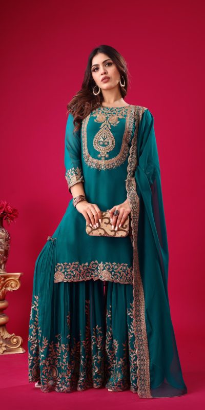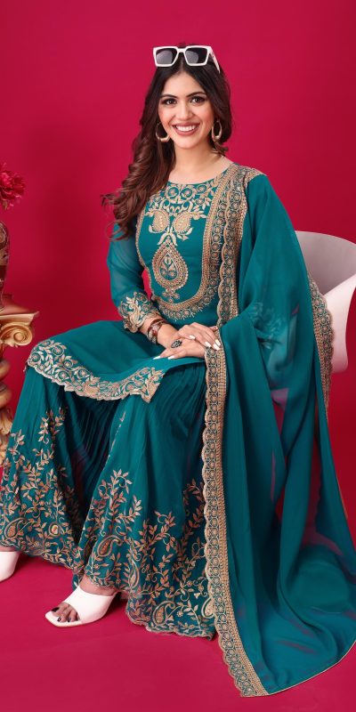 SRK 5242 Blue Faux Georgette Embroidery Sequence Work Salwar Suit  Casual, Wedding, Party, Festive, Events Etc.4-6 Working Days@ 2099/-only