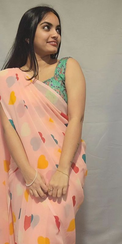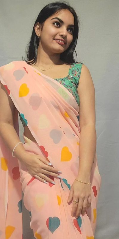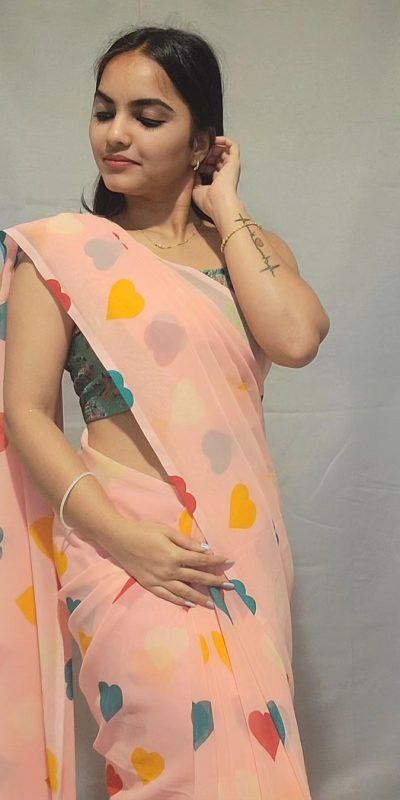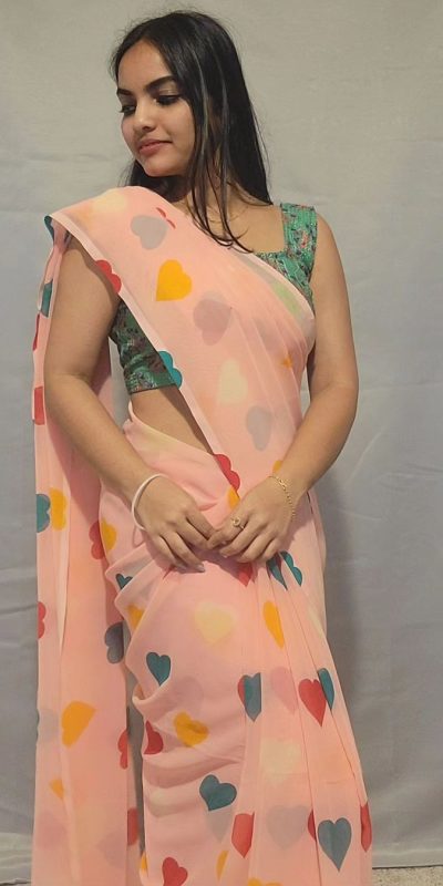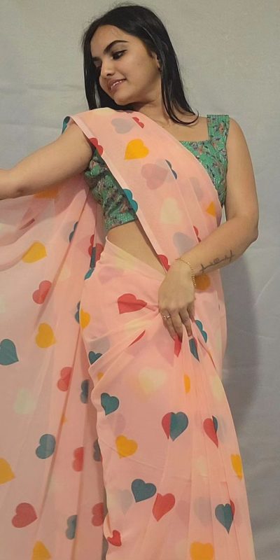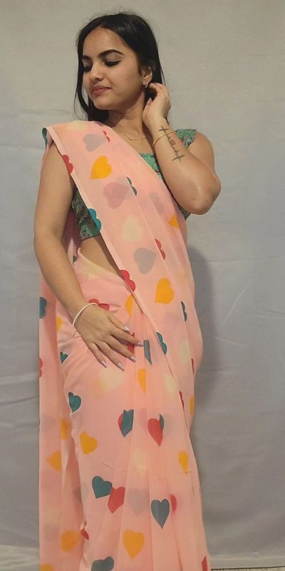 SC 215 Peach Color Soft Georgette Silk Digital Print Heart Design Ready To Wear Saree Casual, Wedding, Festive, Events . Expected Delivery  4-6 Working Days @1499/- only