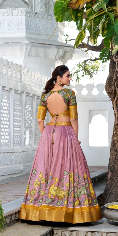 LNB 1234 Yellow Color Dola Silk Kalamkari Print Zari Border Lehenga Choli Wedding, Party, Festive, Events Etc. Delivery 4-6 Working Days Rs 2149