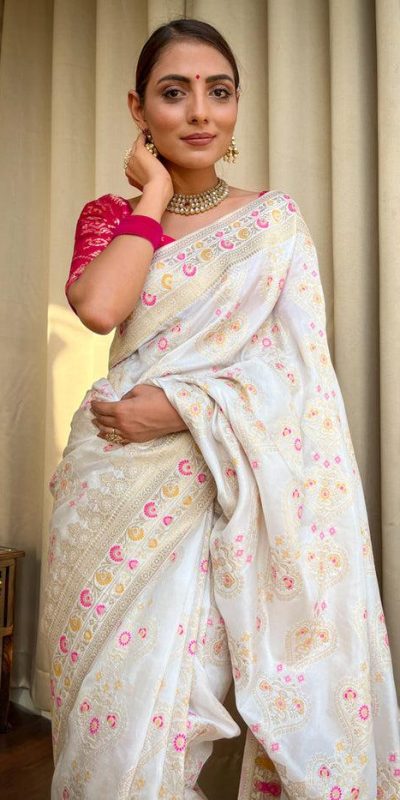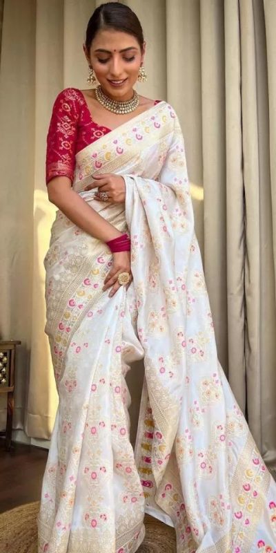 MS 476 White Color Soft Lichi Silk Kubera Pattu On All Over Saree Casual, Wedding, Festive, Events . Expected Delivery  4-6 Working Days @1299/- only
