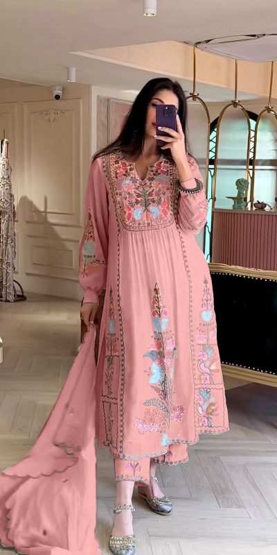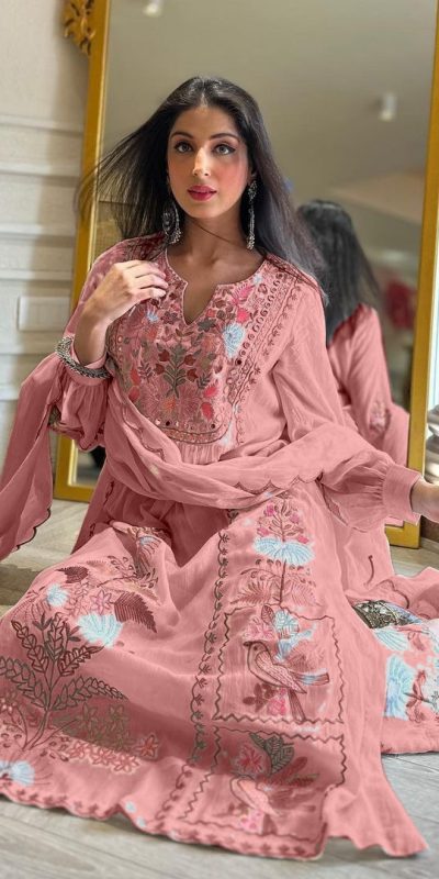 AD 118 Orange Color Georgette Embroidery Work Salwar Suit Casual, Wedding, Festive, Events Etc. Expected Delivery 4-6 Working Days @1950/-