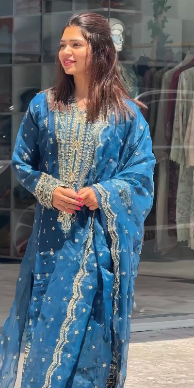 Beautiful Blue Color Organza Silk Embroidery Work Sharara Suit