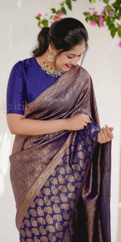 Beautiful Navy Blue Color Soft Lichi Silk With Ordinary Design Saree
