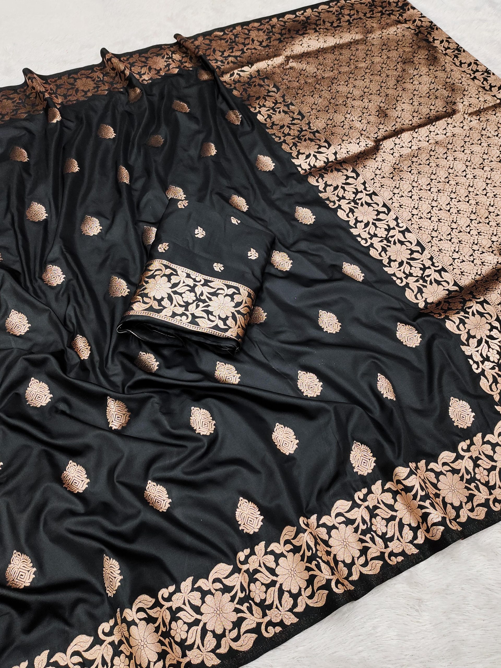 Saree :- Soft And pure banarasi silk saree with self weaving design all over the Saree & zari weaving Rich pallu with zari weaving unique border & heavy rich Pallu.