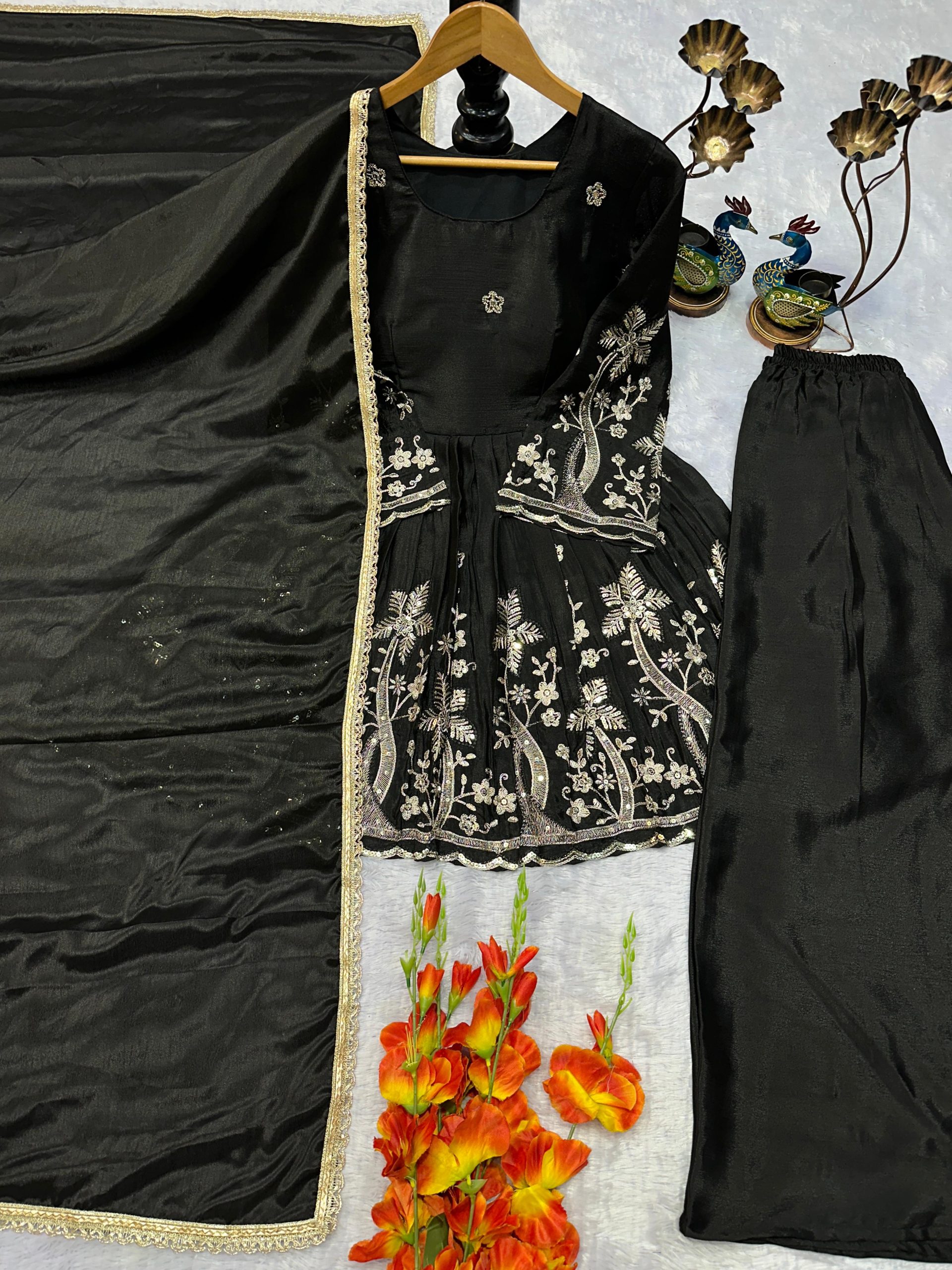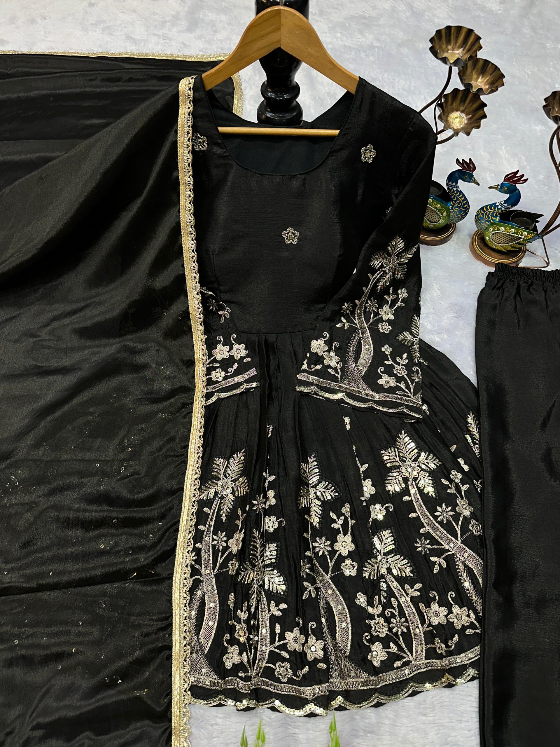 Black Chinon Silk Lace Embroidery Work Salwar Suit