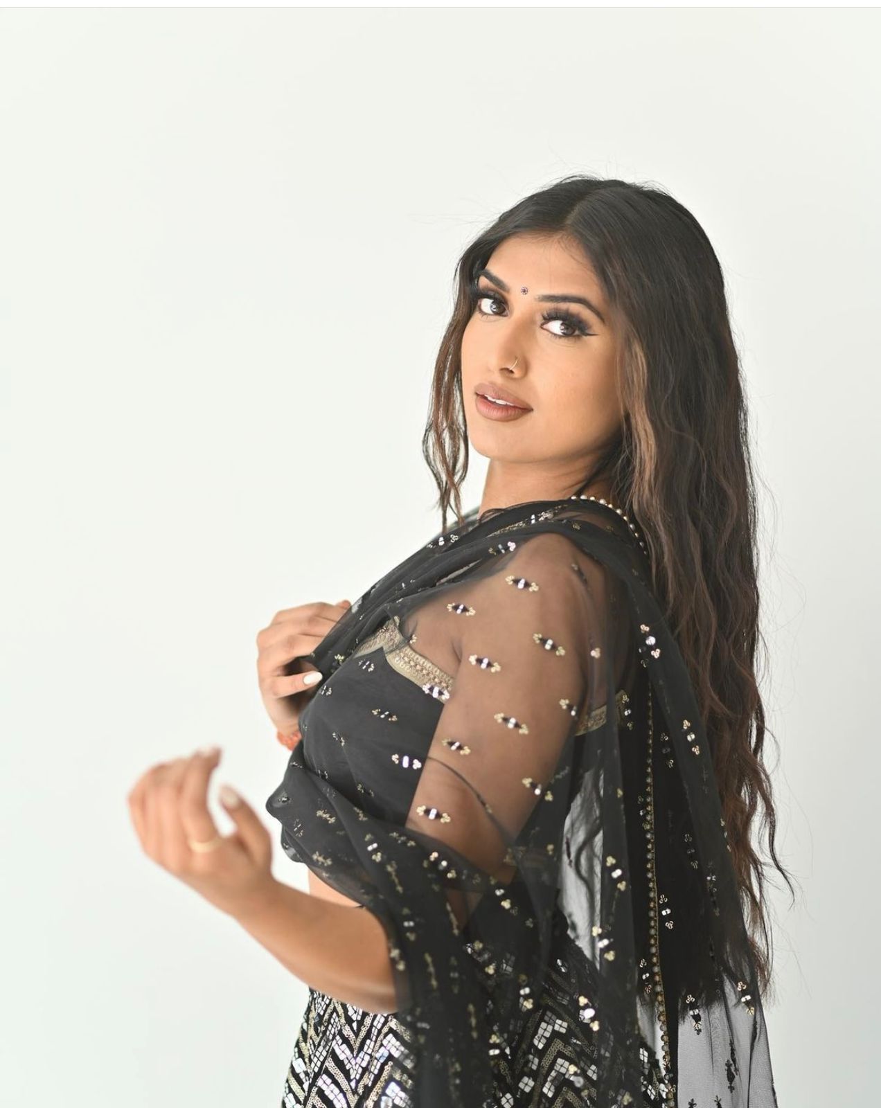 Black Faux Georgette Sequence Work Lehenga Choli