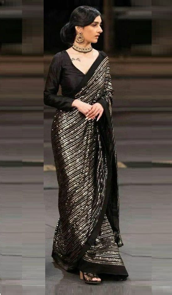 Black Georgette With Sequence All Over Saree