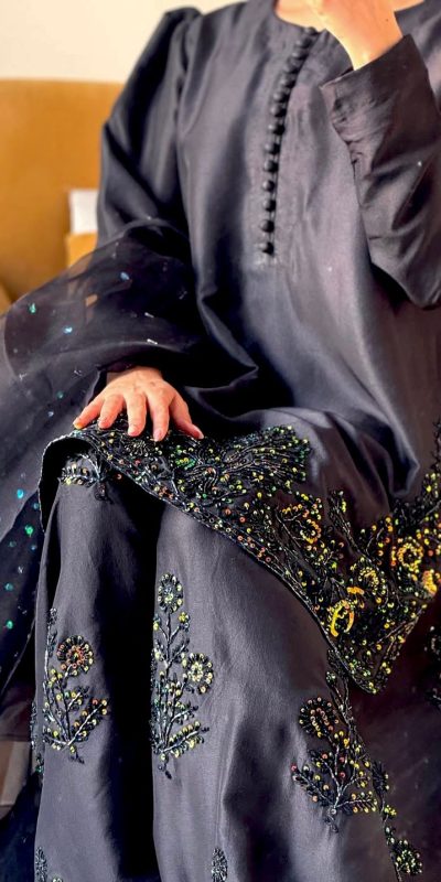 Top Fabric : Pure Natural Crep Silk With Embroidery Sequence Work With Full Sleeve