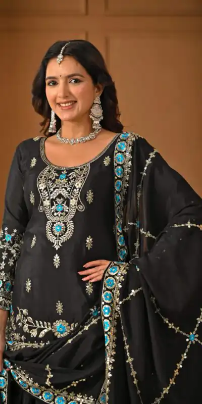 Black NC Vichitra Silk Embroidery Work Salwar Suit