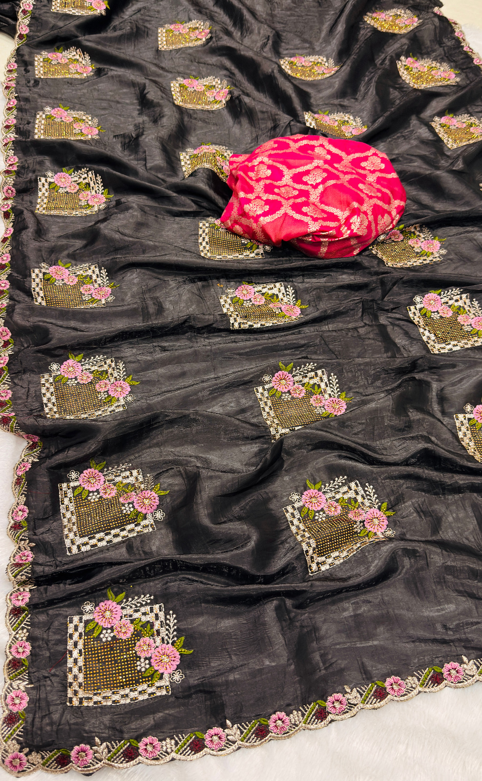 Black Paper Silk Crush With Embroider Saree