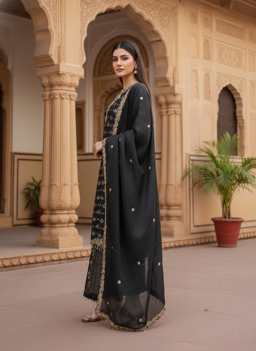 Black Pure Organza Silk Sequence Work Salwar Suit