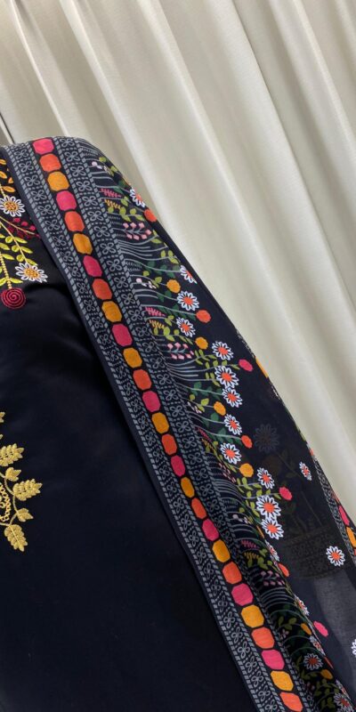 Black Roman Silk With Embroidery Salwar Suit