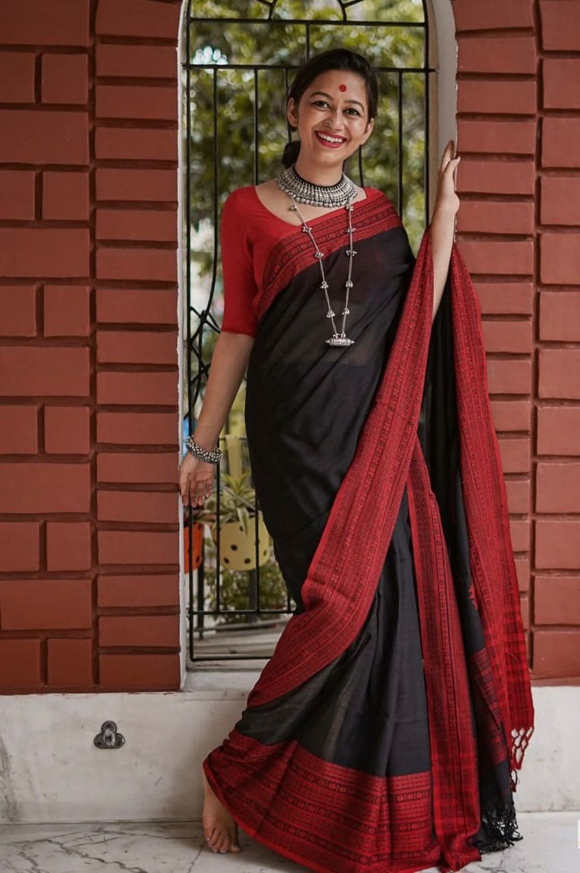 The saree’s delicate detailing and rich tones make it ideal for special occasions. It drapes effortlessly and looks elegant from every angle.