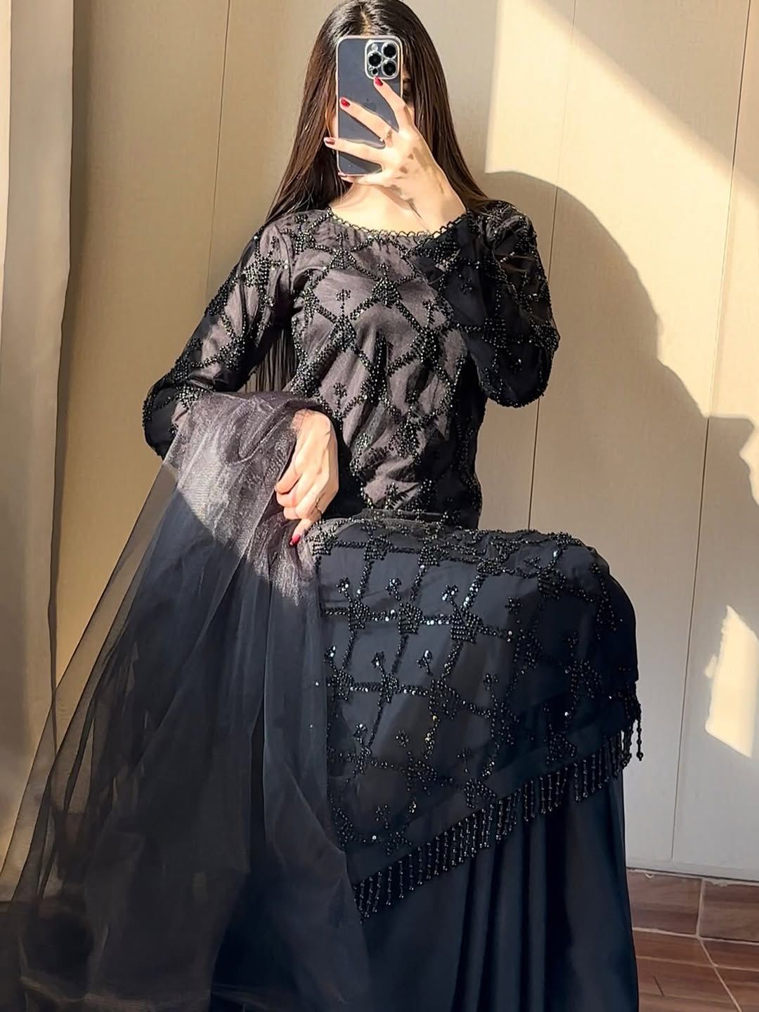 top work :heavy Embroidery Sequences Work With Fancy Pearl Moti And Lace Border