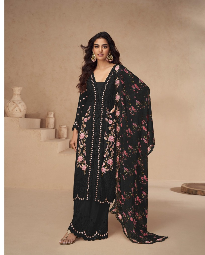 Top:- heavy Real Vichitra With Embroidery work sequence & Type Top – Stitch Size :-Free Size semi Stitched Sleeves :- heavy Real Vichitra Inner :- Santoon Palazzo :- heavy Real Vichitra With Embroidery work +sequence With Inner attached (Santoon)