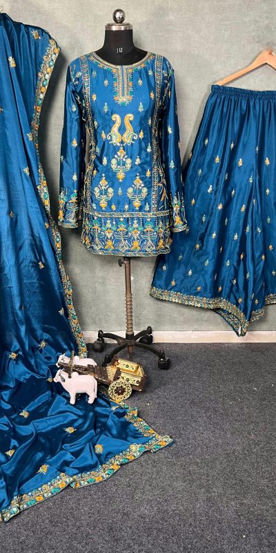 Blue Chinon Silk Sequin Embroidery Work Salwar Suit