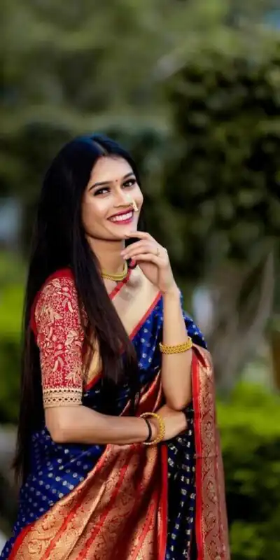 The texture is smooth but the saree feels heavy and rich. Normal wash makes it a practical choice.
