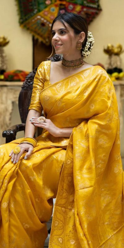 Bright Yellow Color Soft Litchi Silk All Over Weaving Saree