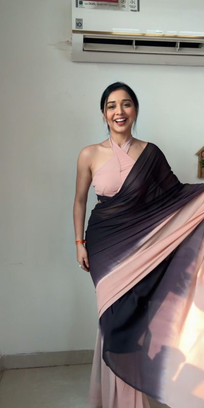SC 225 Peach Black Color Soft Georgette Silk Ready To Wear Saree Casual, Wedding, Festive, Events . Expected Delivery 4-6 Working Days @1549/- only