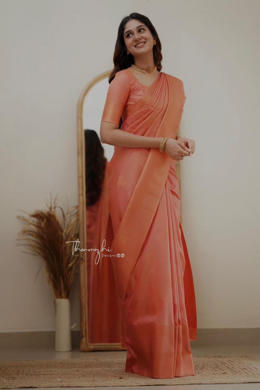 Classic Peach Lichi Silk Jacquard Work Saree