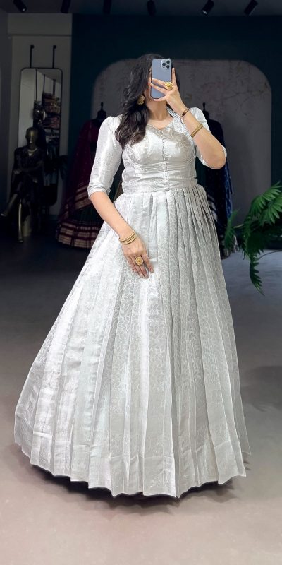 YNF 5321 White Color Kanjivaram Zari Weaving Work Gown Casual, Wedding, Festive, Events . Expected Delivery 4-6 Working Days @1999/- only