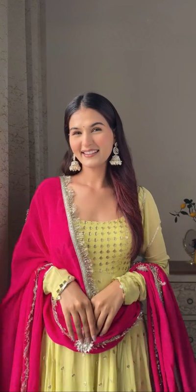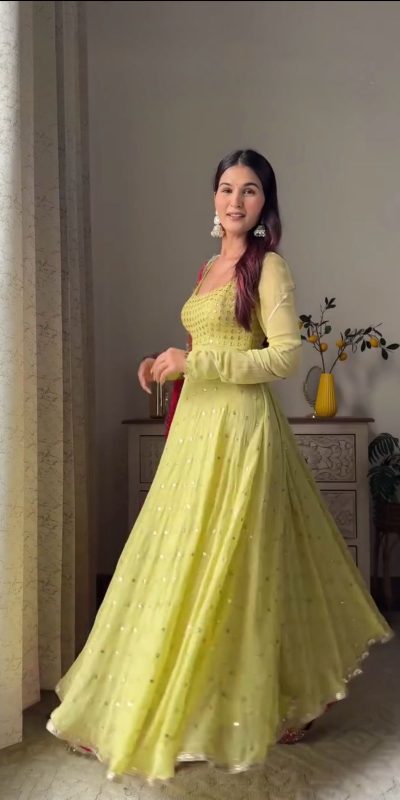 | Fabrics | Top Fabric : Foix georgette Inner : Micro Work. : thread with 9mm Sequence Stich. : M(38),XL(42), XXL(44) with 3xl margin) Height :- 51inch Pent Fabric :- Micro cotton Stich :- Full stich Free Size Semi Stitched Dupatta Fabric : Foix Georgette Work : thread with foreside lace border Length : 2.2 meter |