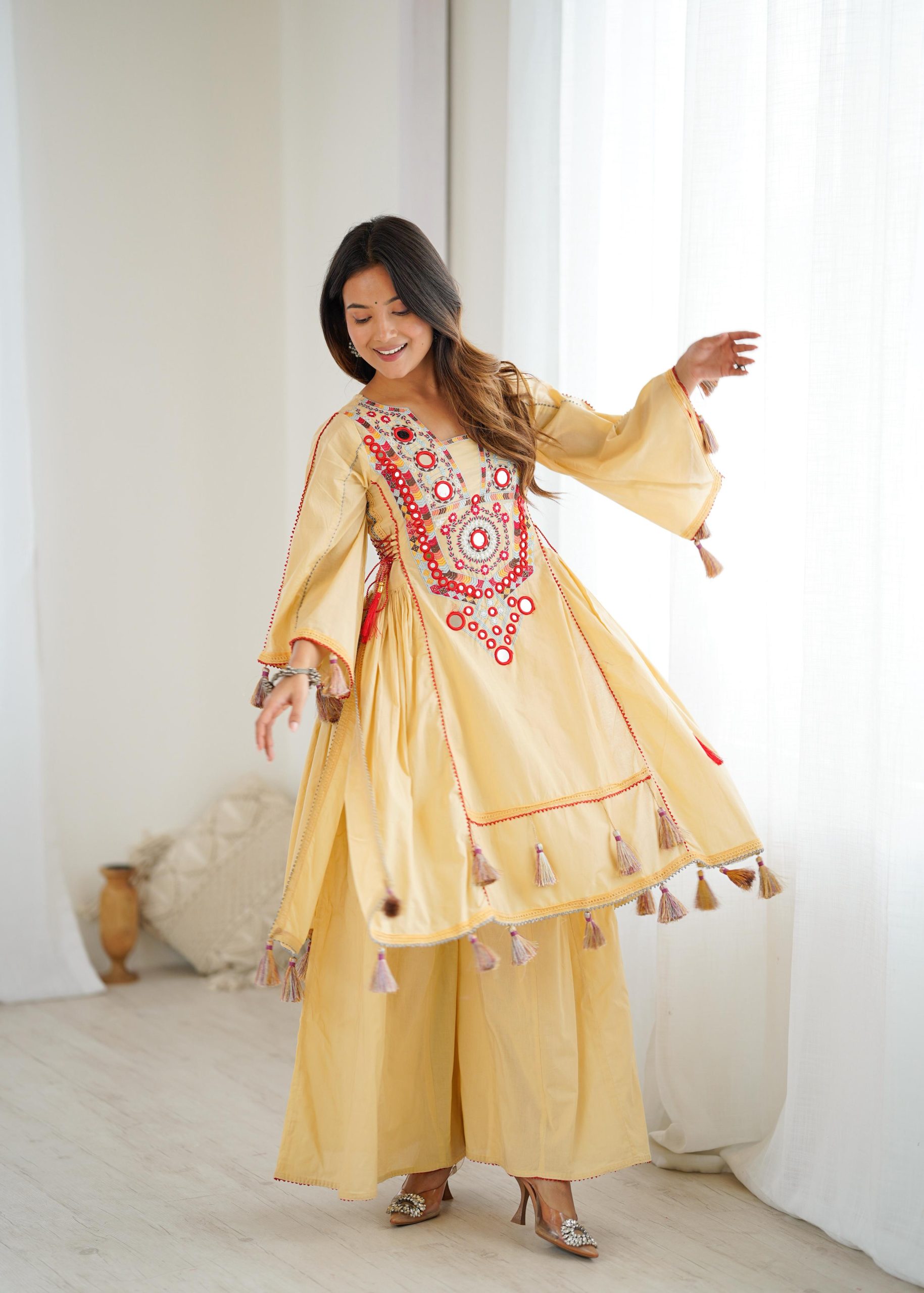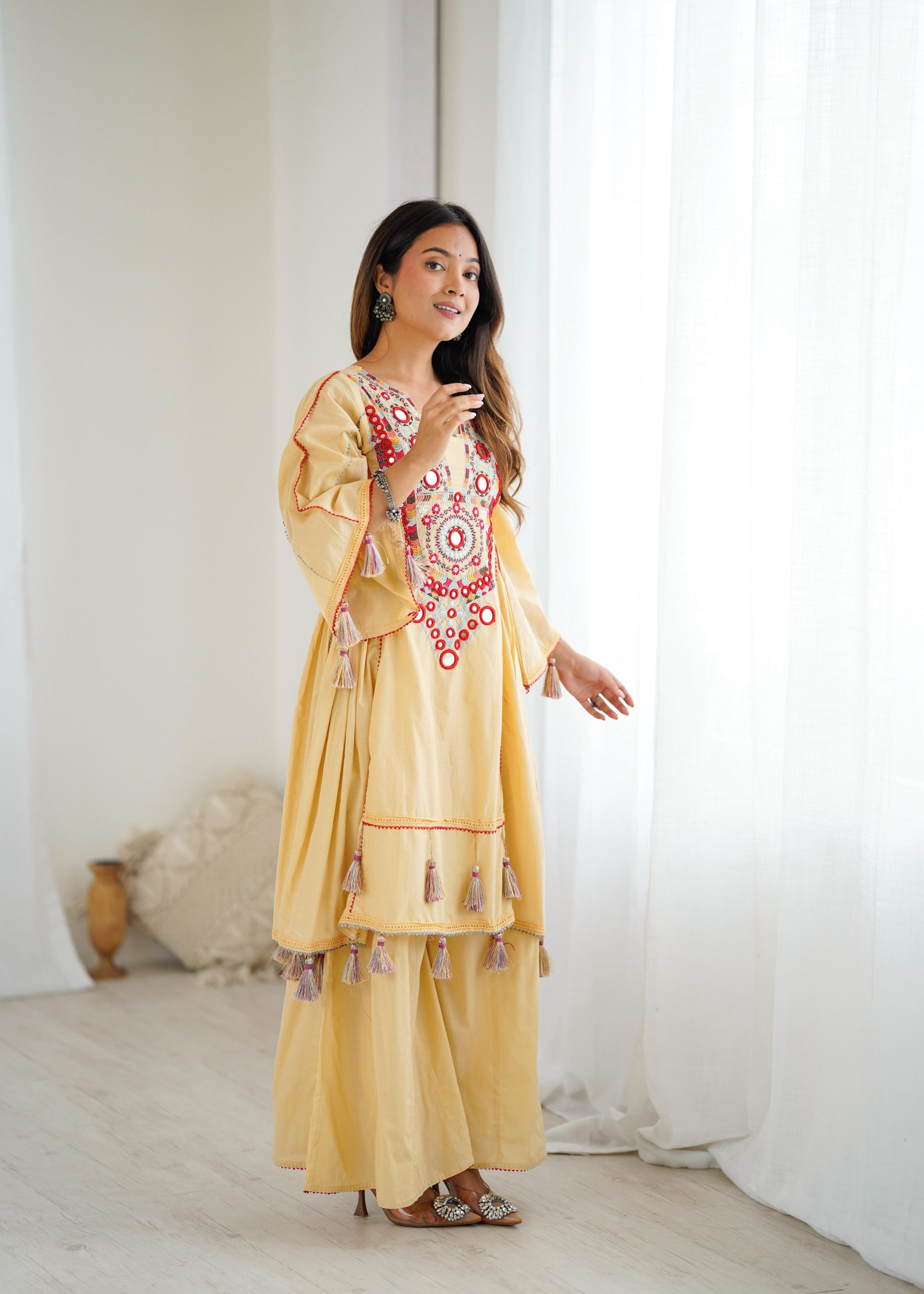 Pure Khadi Cotton With Embroidery Sequence Work With Real Mirror Work