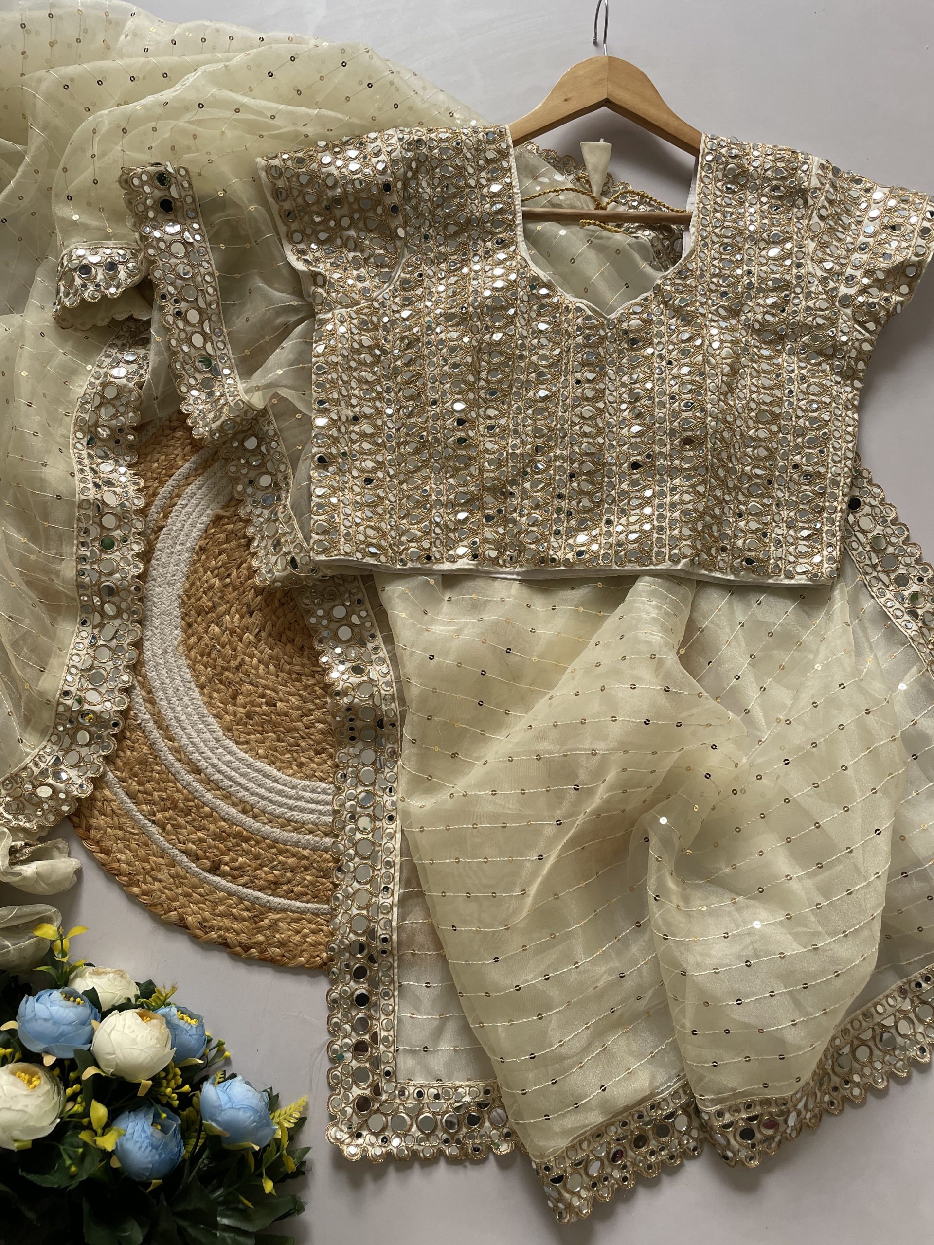 “I appreciate the transparent sizing information provided. The blouse and petticoat fit perfectly with the saree.”
