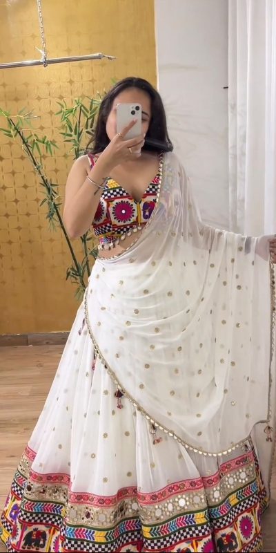 PC N04 White Color Georgette Heavy Gamathi Work Lehenga Choli Casual, Party Wear, Events, Festivals Wear Expected Delivery 4-6 Working Days @2629/-
