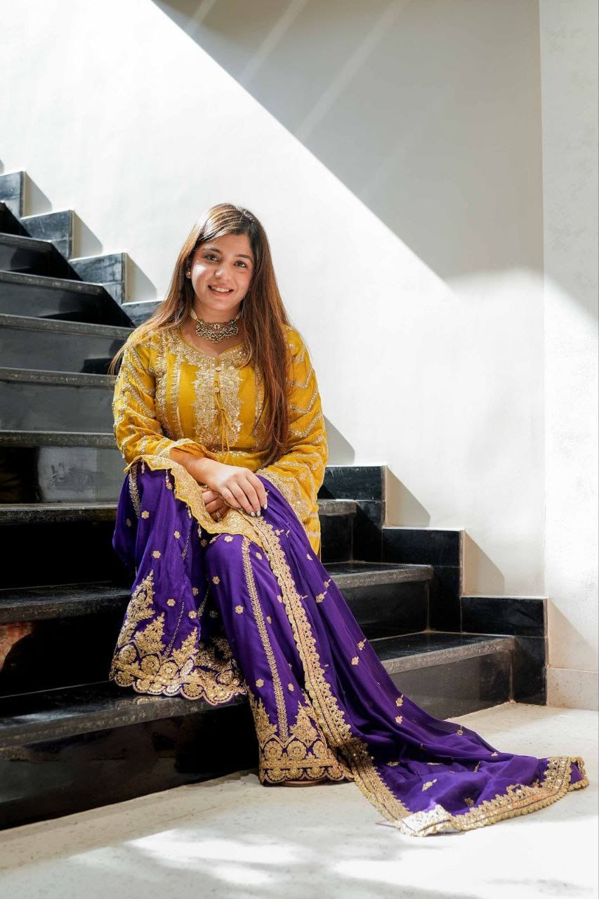 Darling Yellow Chinon Silk Embroider Work Salwar Suit