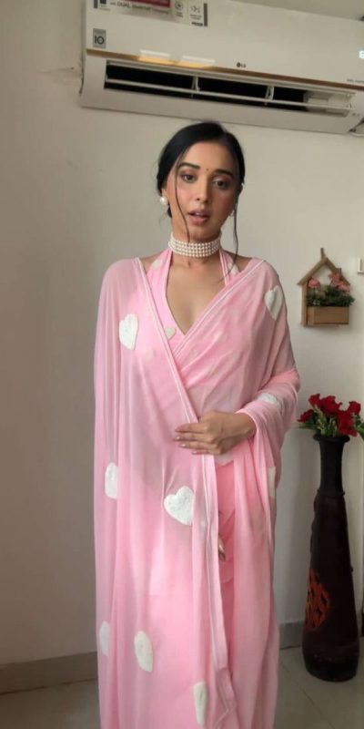 Dazzling Baby Pink Color Georgette With Hart Gmathi Work Saree