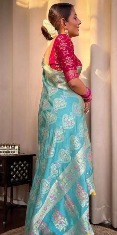 Dazzling Blue Color Soft Lichi Silk Cloth Rich Pallu All Over Saree