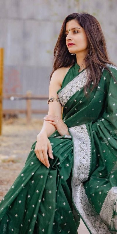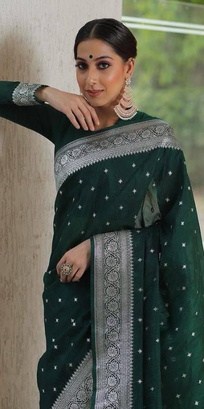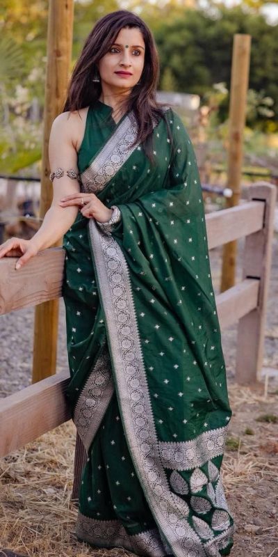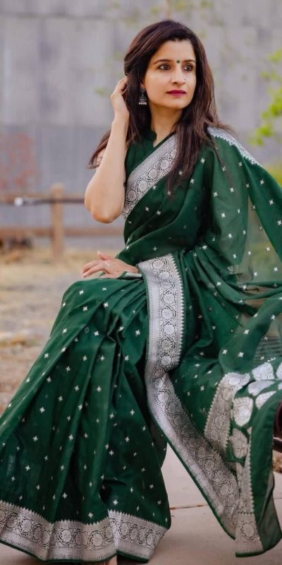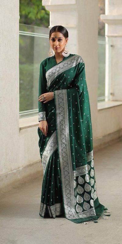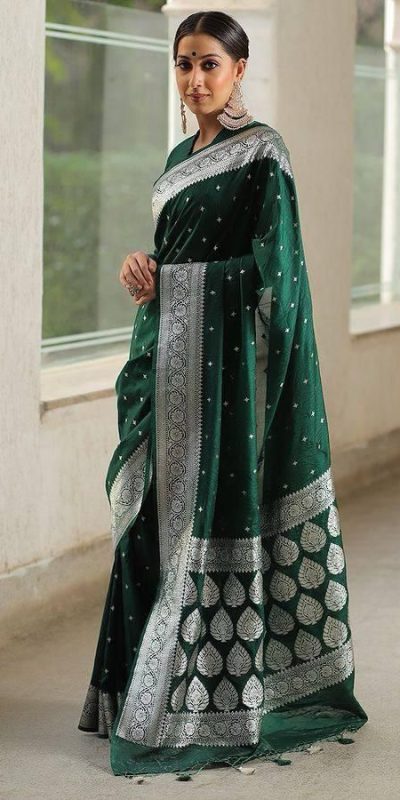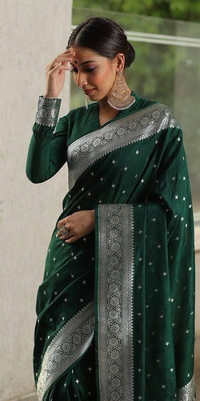 Dazzling Green Color Soft Lichi Silk Beautiful Rich Pallu Saree