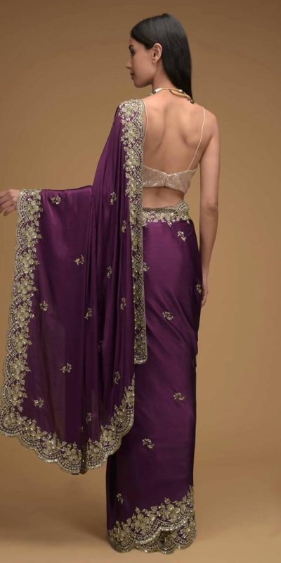 Dazzling Purple Color Rangoli Silk Embroidery Sequence Saree