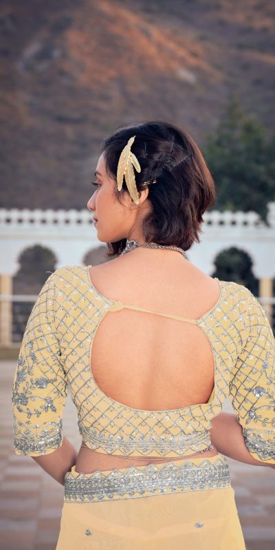 KT 244 Yellow Color Bright Organza Silk Sequence Work Saree Blouse: Bangalore Silk Casual, Party Wear, Wedding Expected Delivery 4-6 Working Days@1899/-