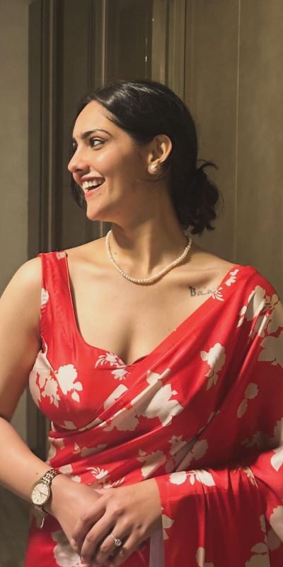 Diksha sharma Red Color Satin Silk Blouse Digital Print Saree