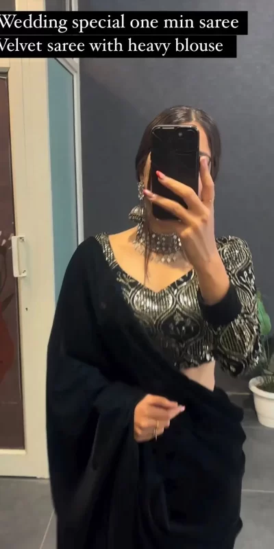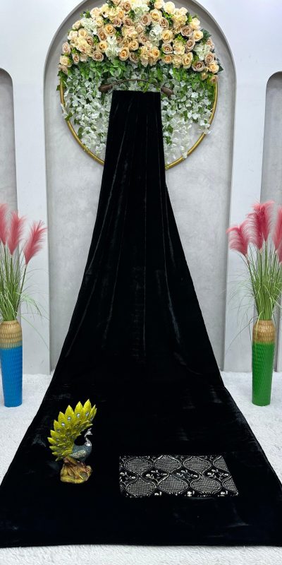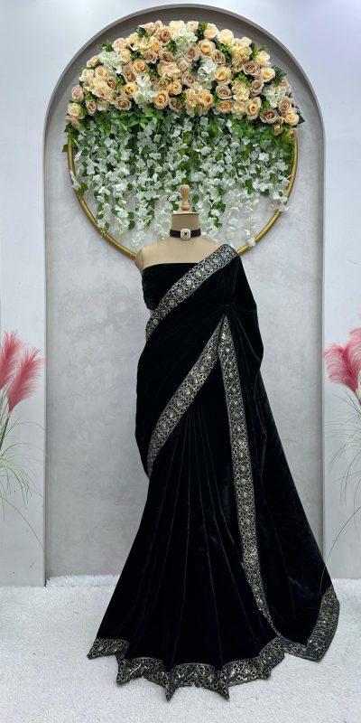Dreamy Black Color Heavy Velvet with Lace work. Sequence Designer Saree