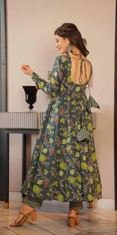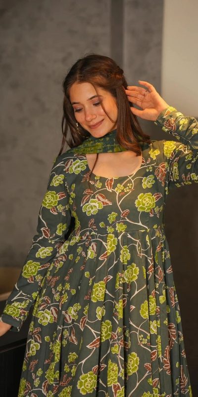 MF 434 Green Color Silk Satin Digital Printed Sleeves Gown Casual, Party, Wedding, Festive, Events Etc. Expected Delivery 4-6 Working Days @1899/- Only