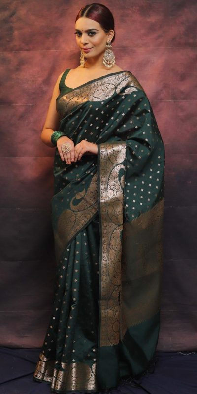 Elegant Green Soft Lichi Silk Beautiful Rich Pallu All Over Saree