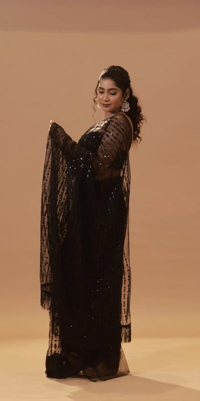 BT 352 Black Color Nylon Butterfly Net Sequence With Thread Work Saree Casual, Wedding, Festive, Events . Expected Delivery  4-6 Working Days @1699/- only