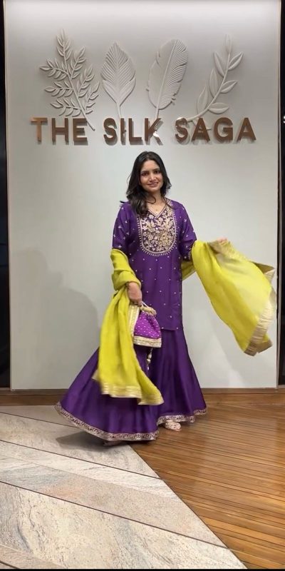 ZSR 3109 Purple Chinnon Silk With 5mm Embroidery Sequence Work Salwar Suit Casual, Wedding, Party, Festive, Events Etc.4-6 Working Days@ 1999/-only