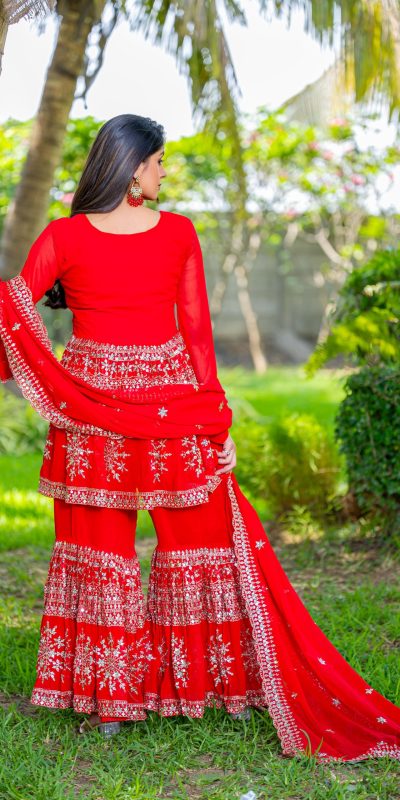 Ram 094 Red Color Georgette 7mm Sequence Work Salwar Suit Casual, Wedding, Festive, Events . Expected Delivery 4-6 Working Days @2349/- only