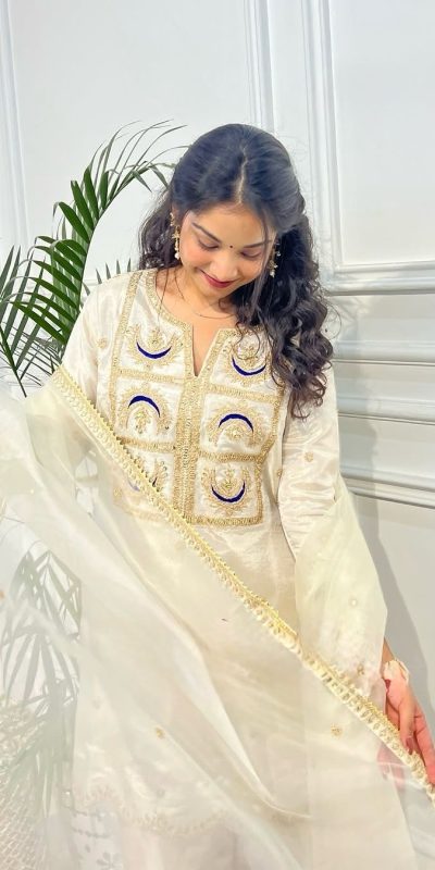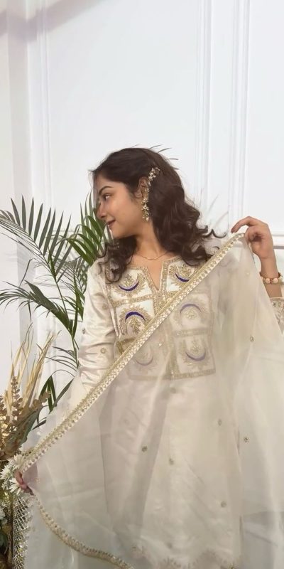 Fantastic White Color VI Chitra Silk With Heavy Coding Embroidery Sequence Work Salwar Suit